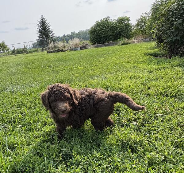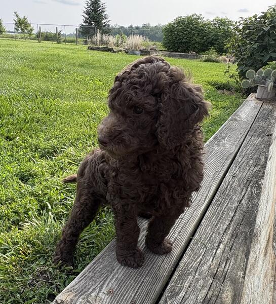 message rev310 about this ad Rufus is an 8 week old, adorable, spunky and intelligent chocolate brown standard poodle ready for his forever home. He has been dewormed and has received his first vaccinations. Dam is a solid black standard poodle, while sire is white. Rufus has been loved on from his first day of life, experiences new things daily, and is a delight. |