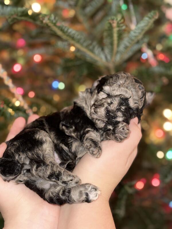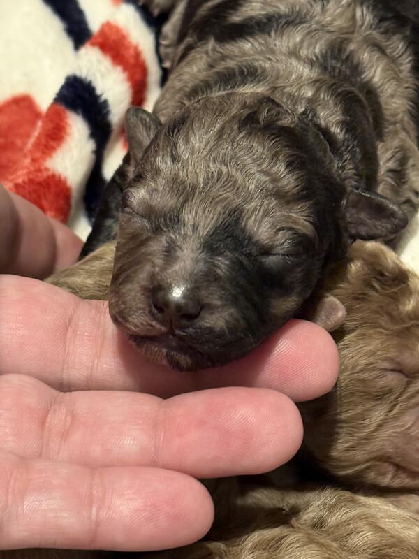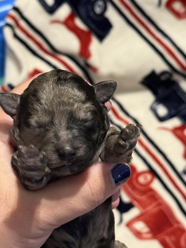 message rjhogart about this ad Coal is a beautiful male blue Merle toy poodle. He is spunky and loves to be cuddled. His striking markings with half black face is going to make him one of a kind. Mom is a blue Merle toy poodle and dad is a chocolate toy poodle. Coal will come with full CKC papers, health certificate, dewormed, vaccines up to date, tail docked. Plus our going home puppy pack. Coal will be ready for his forever home on 2/2/26. If you are interested in Coal please reach out. My name is Jen text me at 239-691-8373, or Russ at 239-410-1989. Please text first. Thank you. |