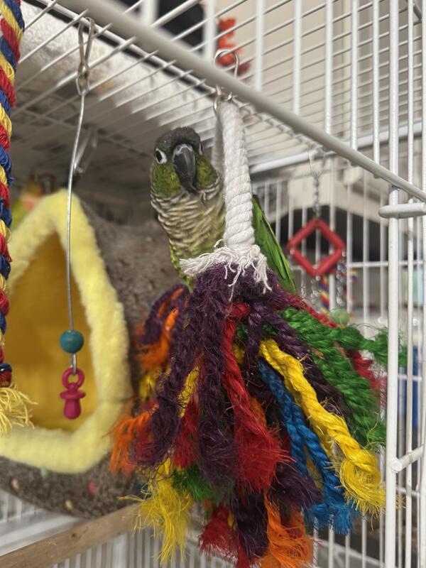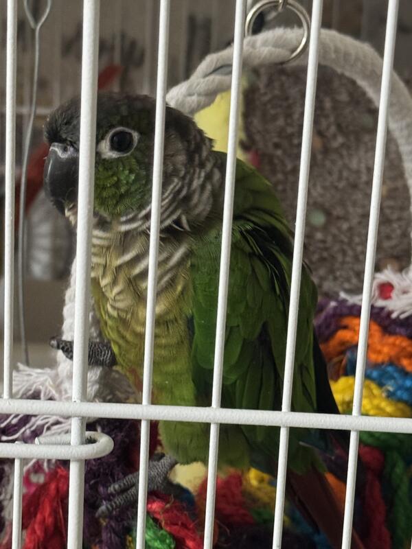 message steelebarr about this ad 2 Green Cheek Conures with cage both very sweet and love being around people Pablo the dark green one is very socialCory the lighter one is shy but she loves to dance and both will say hello and I Love You . 800 for both with cage |
