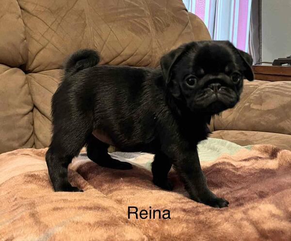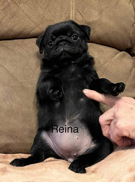 message eggemeyerj about this ad AKC Reina is a gorgeous female black pug puppy. She is absolute doll baby, with a sweet, sweet personality to go with her looks. Reina is an outstanding representation of her breed, and has a super fun, loving personality. She loves play time, but also loves her human snuggles and attention. Reinas parents are both tested for PDE and both are PDE negative, thus she will be N/N or negative for PDE, too. Reina has been vet checked and cleared by my vet. She is just getting started on house breaking, and is also still using a disposable potty pad in a tray, when she can't go outside. Reina has had two vaccinations for parvo, including one being a 5-way, at this time. Also, she has current wormings, and preventatives for Giardia or Coccidia. You could drive to our area, and I would meet you at the Jasper exit, Love's Travel Plaza, or my son, Adam, does do deliveries for $1 a mile, one direction, up to 450 miles. Anything over that, he gets $100 motel fee, to cover his night staying in a motel, as over 900 miles in one day, is just too many miles to do in one day. Adam also does fly the puppies to you, with added ticket prices for himself and the puppy, plus a nanny fee(this must be paid ahead, on the flight tickets Nanny fee can be paid at meet up or delivery. AKC Reina comes with a health certificate or clear vet check(depending on if flying or you need the health certificate her AKC litter registration(limited as a pet baby, unless further discussed with full AKC her shot/worming record booklet, puppy kit, with toys, blanket, chew, etc. Please feel free to ask for more pictures or a video, if you are seriously interested. Thanks for viewing this gorgeous baby girl. Deposit to hold her is $300, and she is ready to leave now, or I can hold an additional 7 days, with a deposit, if necessary. We are near Jasper, MO. and I do require one phone conversation, before the sale of a baby is complete. This is for both of our benefits, to avoid a scam, or potential scam. Thank you. Judy message eggemeyerj about this ad |