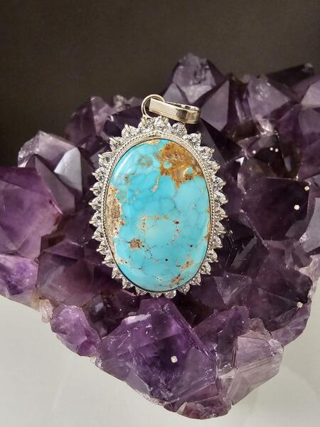 message atefeh about this ad Handmade Jeweled Silver Pendant with Original Neyshabur (A City in Iran) Turquoise, Rhodium Plated. Approximate Weight: 16.02 grams Approximate Dimensions: 40 mm*30 mm Price: 345 AUD Posting costs are the responsibility of the customer. |