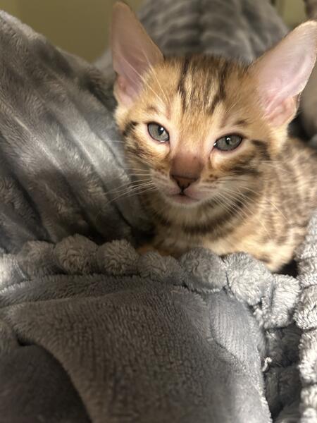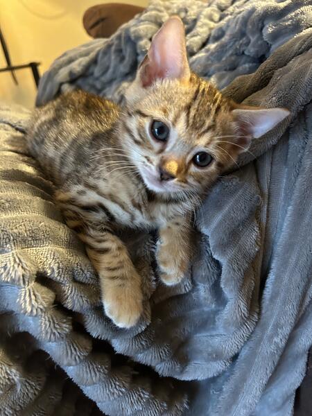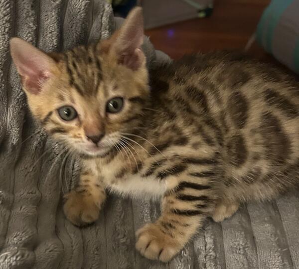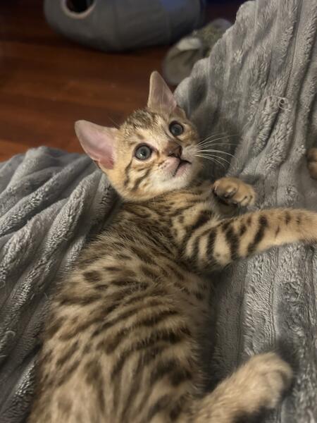 message charissa about this ad My female Bengal has delivered 5 of the sweetest little kitties ever. They were born on 8/31. There are pics are of the Mom and Dad. Mom is brown (gold) and Dad is charcoal (silver They will get their first shots in 11/1 and will be ready for their new home on 11/2. |