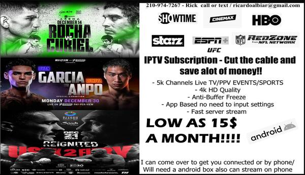 message iptv2025 about this ad About 3k or more channels-Including Movie Channels/Sports/PPV Events- Also movie app included for all new content Easy Setup Full Support 100% - I can get you connected by phone Clear HD Quality- Fast Stable Stream-Anti Buffer Technology- Full Tv Guide - Easy Navigation- App Based no need to input settings- |