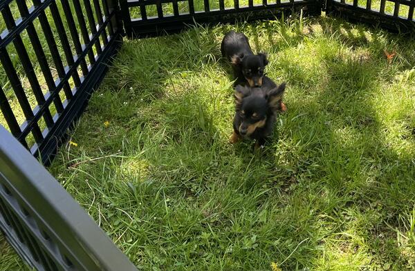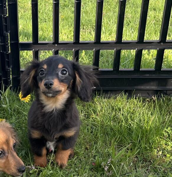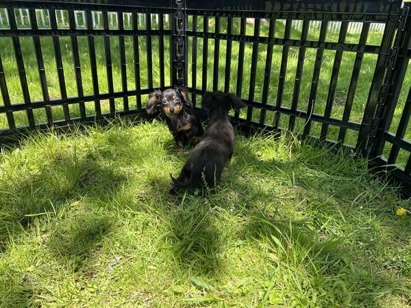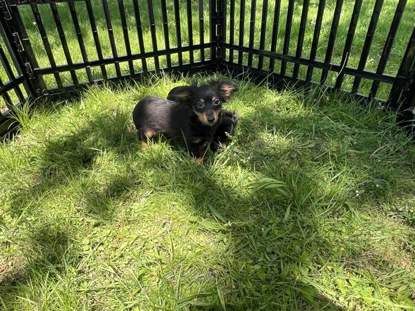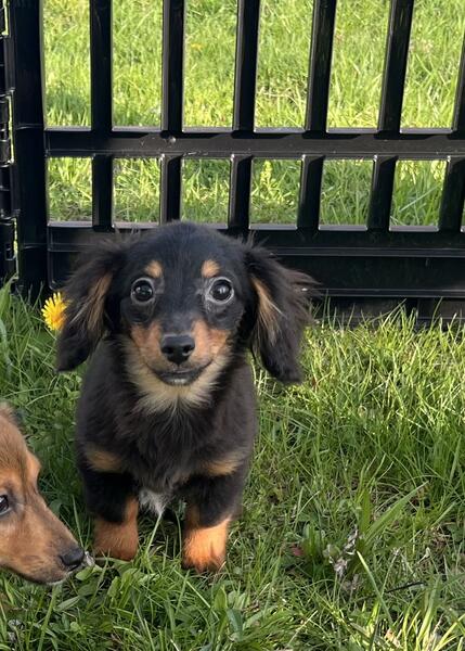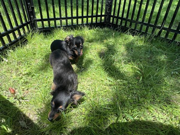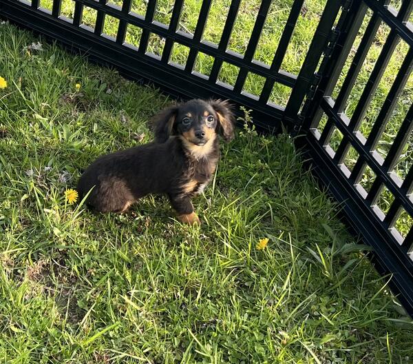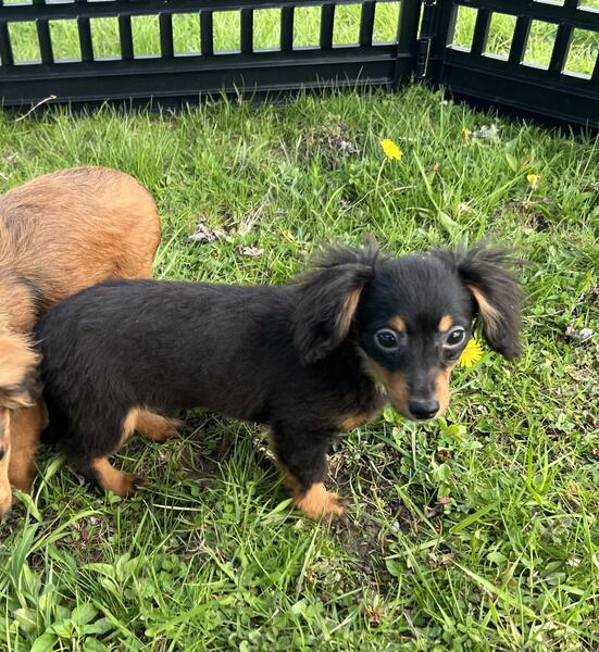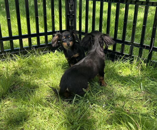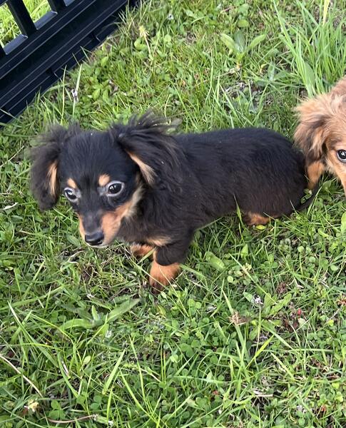 message jcklg425 about this ad One black and tan male and one black and tan female. Both are long haired. Female 800 and male 700. Vaccinated, vet checked, microchipped, wormed. Awesome little puppies who are very much loved. Very tiny, parents are small. Should not mature over 7 pounds. Phone calls only. No texts or hoobly messages will be read 440-890-332two |
