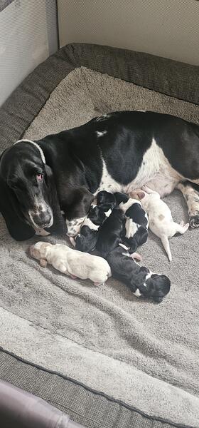 message linds80 about this ad We have 6 beautiful, healthy basset hound puppies, currently 7 weeks old. They will be ready to go to new homes the weekend of May 16. There are two lemon/tan boys, two black and white boys, one black and white girl, and one black tri-color. The darker puppies are starting to show their freckles! They will have their first shots and dewormer. We own mom and dad of the puppies. They will not come with papers. More pictures available upon request. Serious inquiries only. |