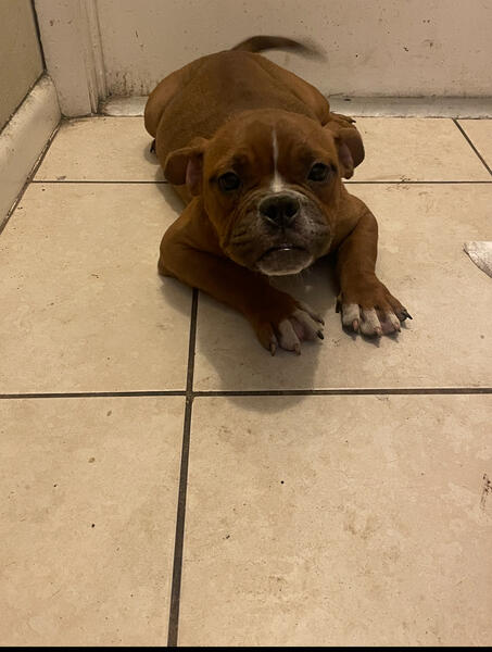 Female pocket bully six months old, looking for a loving home