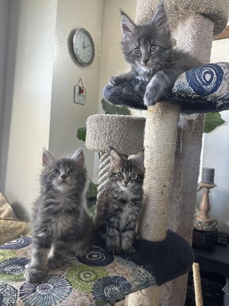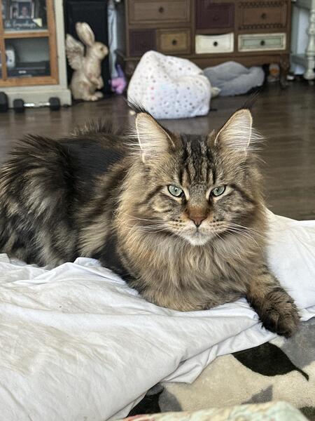 message hirenee about this ad I have queens imported from various locations throughout the world. They have different looks and beautiful individual qualities. Their kittens are equally as beautiful with many various vibrant colours with ranges from orange tabby, torties, black and brown tabby, shaded, Harley Quinn, the extremely rare-gray/blue tabby. my prices are fair, and I prefer to sell as household pets. Prices start at just $1000 and can go up to $3500 Maincoon kittens due to be ready to go in June 2024. Please reserve yours now. Waiting list is starting to grow. We are located in NorCal. We offer delivery at additional cost. Cost includes up to date on shots and dewormed. Kittens are fed the best food with added protein and omega (not straight kibble. We avoid kibble with corn filler Parents have been tested for feline leukemia and all the recommended tests by our trusted vet. Price will be determined once kittens are confirmed. Our King Sheba is from Peoples Republic and was chosen due to his thick fur, ultra raccoon tail, his amazing swirl coloring of black silver, smoke, orange, reds, greys, (and laxed personality) Tabby strips but ultimately his pompous attitude and no fear come brush me dear, relaxed demeanor. Hes extremely gentle and allows a good tummy brushing. Mom is a beautiful pastel version of King Sheba. She is curious, spunky, playful, silly, happy, young lady. She has a harlequin facial markings of grey and orange. Our 2nd Queen is a silver shaded thick maned with extra thick coon tail from Belarus. Next is our US born out of texas Misty,tortie. They will utilize every toy you bring to them as will her offspring. Together these 3 are very gentle sweet cattens. With sassy attitude, which is a must. The pointed fur ears are amazing. message hirenee about this ad |