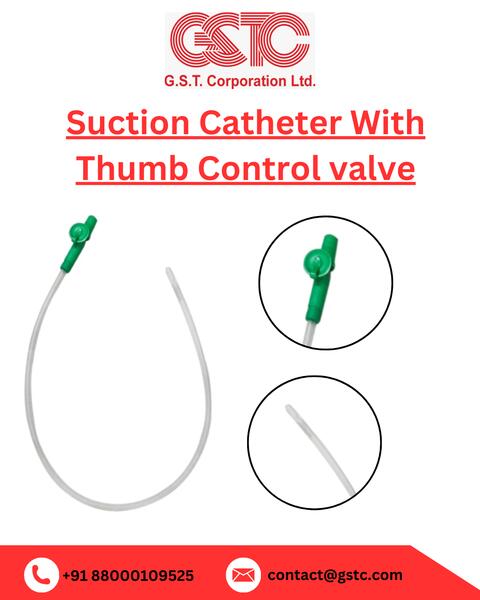 message garimagstc about this ad A Suction Catheter with Thumb Control Valve is a thin, flexible tube used to remove mucus and fluids from a patients mouth, throat, or airways. It helps keep the breathing side clear, especially for patients who cannot cough or clear it on their own. The thumb control valve lets the user easily start or stop the suction with their thumb, giving more control during the process. This suction catheter with Thumb Control Valve is commonly used in hospitals, ICUs, and during surgeries. It connects to a suction machine and is carefully inserted into the airway or tracheostomy tube to clear blockages. The Suction Catheter with Thumb Control helps improve breathing and reduce the risk of infection. It is a simple, safe, and effective tool used by doctors and nurses to provide better care for patients with breathing problems. |