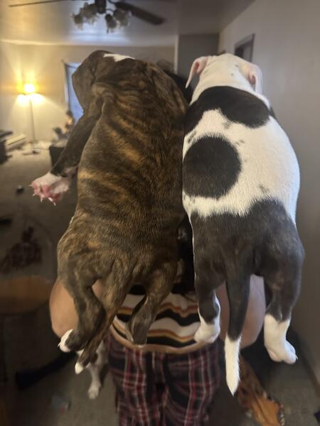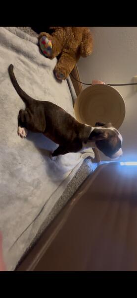 message drdlv7563 about this ad These pups are 5 weeks and 3 days old today. They will be all available for their new families next week They have been so fun and I cant wait to see how they grow up. Im open for reservations PM for info Brindle and white black spots and brown 1 female only out of 5 / tel: 920-539-5061 |