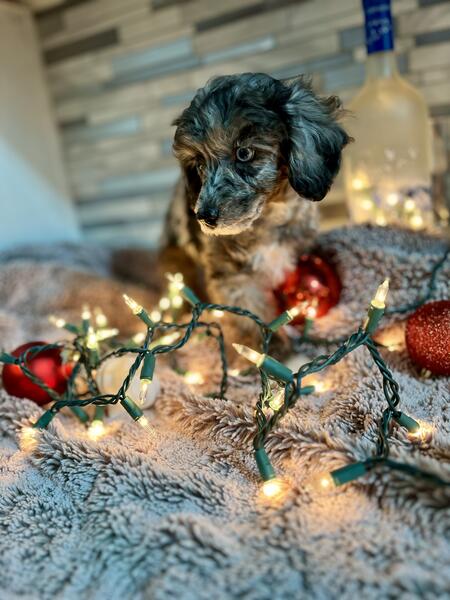 message aussiegirl about this ad Large toy/ small miniature poodle. He has really cool markings and blue eyes (1.5 His mom is far left in dog bed pic. Tiny |