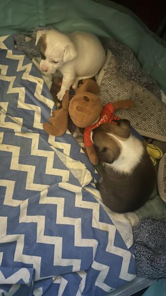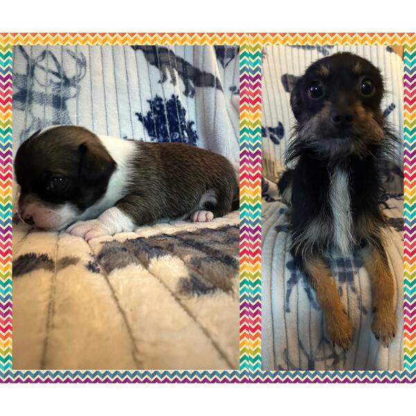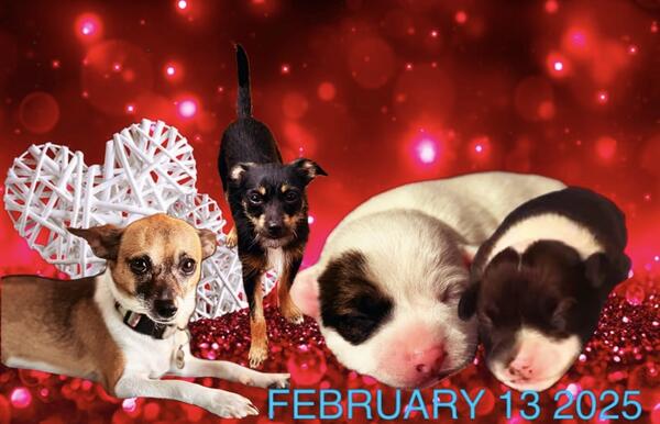 message tamara14 about this ad Male Chihuahua puppy ready to go April 10 2025 Will have first set of shots and dewormer Photo with red background is mom dad and baby wihite pup is gone mom is brown / white Dad is black and brown and white |