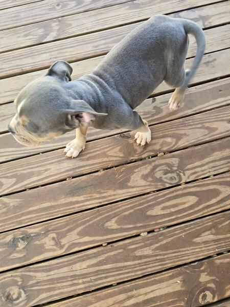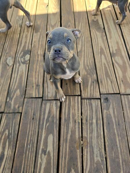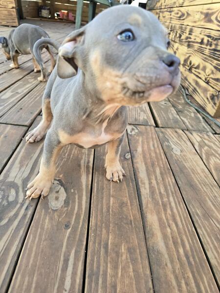 message lgnbt1061 about this ad 4 male 1 female standard American bully pups. Have first round of shots and have been wormed. Parents are even tempered and have been raised with children. Born November 11th. |
