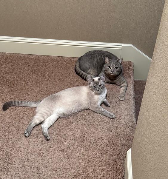 message kzcats about this ad Looking to rehome two beautiful indoor-only cats. They get along extremely well and can go together as a package deal. I can separate them if needed, but priority goes to a home that wants both. Cat 1 - British Shorthair (Male, 2 Years) Cesar is a sweet but independent boy. He enjoys being petted, played with, and shown affection, but hes not much of a cuddlerhe prefers his own personal space. He is cautious, smart, and does well with routine and calm environment. Hes also very talkativeespecially when its time for a refill on food or water. Cesar also has a funny obsession with windows. He loves lounging in the sun, watching the world outside, and even uses his paws to open curtains like a little human. If you want a cat that keeps you entertained with his funny chatter and unique personality, Cesar is the one. - Neutered - Indoor Only - Bday Nov 2nd, 2023 - Had previous vaccines, will need f/u shots soon Cat 2 - Siamese Mix (Female, 1 year and 7 mo) Luna loves nothing more than being close to her human. Luna is a cuddler through and throughshell curl up right beside you on the couch or sprawl across your lap for nap time. Shes a gentle shadow who follows you around the house, whether its laundry time or waiting outside the bathroom door until you come out. She isnt very talkative, but when she does meow its soft and sweetjust like her personality. - Spayed - Indoor Only - Bday Mar 13th, 2024 - Had previous vaccines, will need f/u shots soon They balance each other out perfectly. The British Shorthair is calm and sweet, while the Siamese mix brings energy and affection. Watching them love, play and chase each other around the house is the best. They coexist peacefully and are used to living together. Serious inquiries only. Looking for stable, loving homes that understand indoor only cats. Feel free to text me at 503-896-3225 message kzcats about this ad |