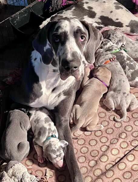 message vngrd7553 about this ad Im looking for a akc registered Great Dane stud to use with my blue harlequin female in October looking for a brindle that Carries chocolate and harlequin and he has euro in him for pol I want to stay under 1 hr from me I live in Mansfield ohio you can call or txt me 567 333 2330 |
