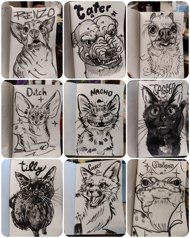 message pltcl2968 about this ad I draw pet caricature of any pet you have. Dogs, cats, rats, snakes, rabbits, guinea pigs, parrots, whatever! Pics are of the ones ive done for people. If youre local to clarksville, hopkinsville, oakgrove, it's just $10 and you pick up when its done. If you're shipping, it'll be an extra $10. Some folks have also chosen to forgo shipping and just want a file sent so they can print it at home too, so thats an option as well. If you want more, its just $10 per pet caricature. Size is 6x9in. These are drawn and inked on watercolor paper. Cashapp/venmo |