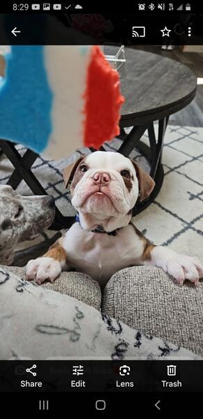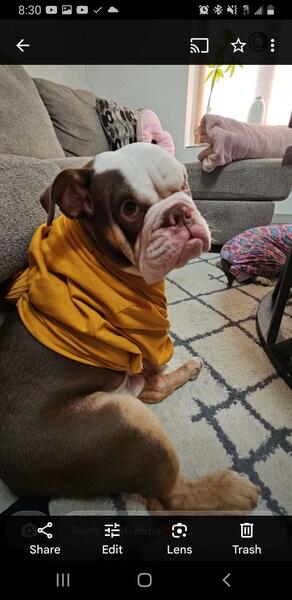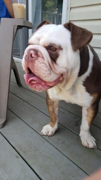 message frank247 about this ad My English bulldog is open and ready for stud. He's 1yr and 3 months old. Pictures of how he looks now and as a puppy. Great with kids and other dogs. Asking 1500 or 1000 and puppy back. |
