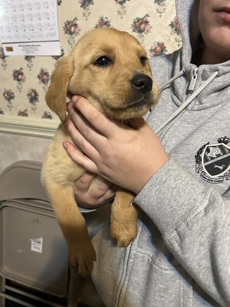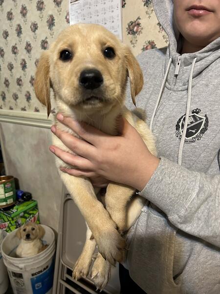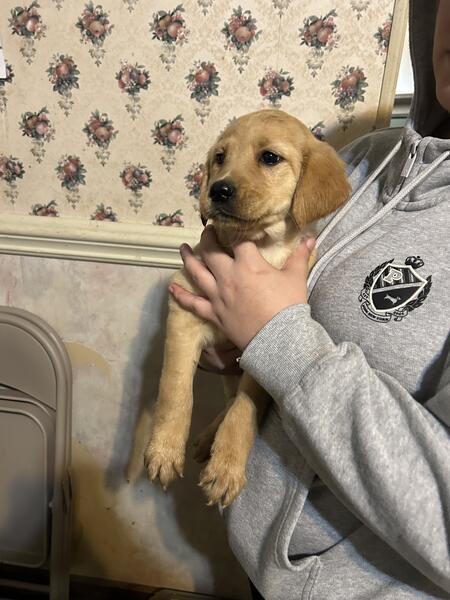 message ktackett5778 about this ad Hello I have golden retriever and Labrador retriever (Goldador) puppies for rehoming. Mom is a Labrador retriever dad is a Golden Retriever. Text if interested 740-285-3025 |
