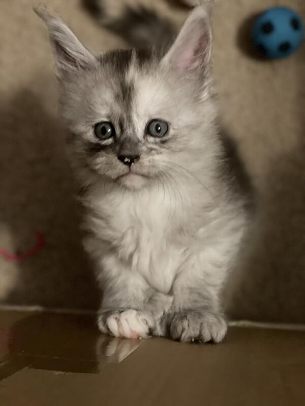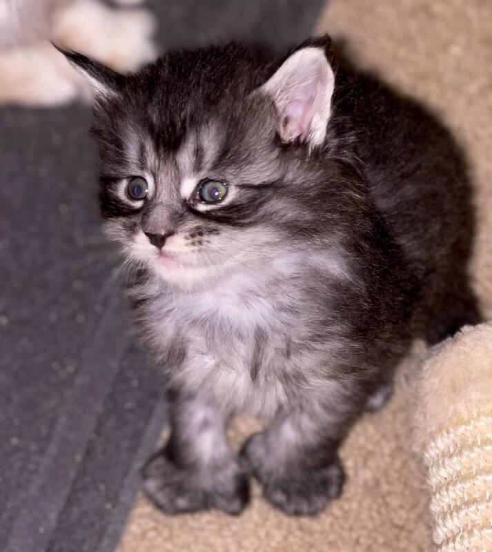 message tammyjo about this ad I have 2 litters. All kittens are polydactyl. Blue smoke tortie female, blue smoke female, 2 black smoke females, black and silver tabby female and male and a tabby male with brown. Will be vet checked, shots and wormed. Will be ready around Dec 6th. |