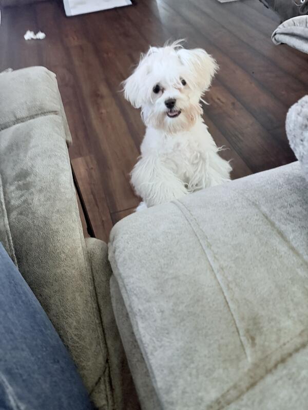 Female Maltese 5 month old shots worming utd house trained Nonshed very smart