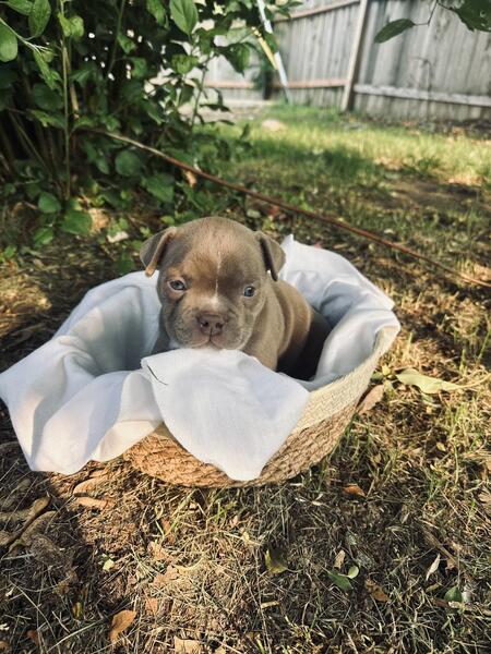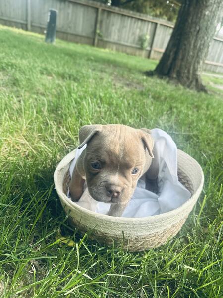 message dogman97 about this ad Beautiful micro bully pups looking for their furever homes. 1 male 3 females. Lilacs and blues. 5 weeks old will be ready to go on 05/02/2025 @8weeks old. If interested call or text Tori @912-798-0547 |