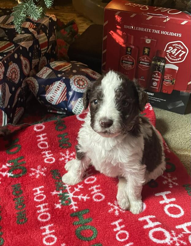 message hallsgoldens1 about this ad Standard size, female DOB Nov. 30, will be available Jan. 18th. Parents are apricot Dam Goldendoodle, Sire is a Party Mix with phantom markings. Shots, dewormed and vet checked. Family raised in our home. Please call or text if you have any questions. 618-317-1175. We live in Southern Illinois and are able to meet you in some cases for adoption. |
