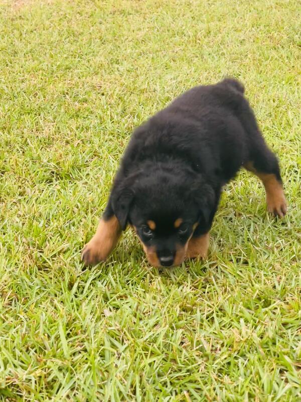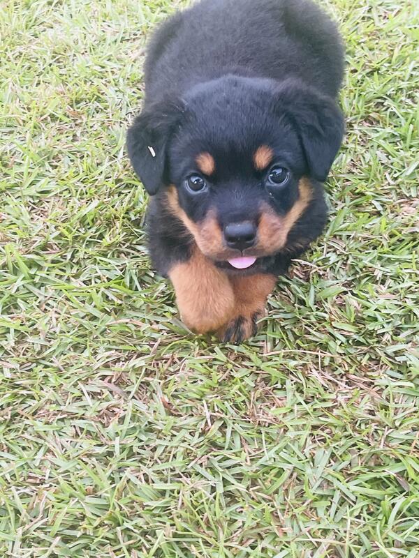 message lauritas about this ad AKC registered Rottweiler pups available to go to their furever homes. One male and one female available. Tails docked and dewclaws removed. Veterinarian puppy wellness check with first shots completed. |