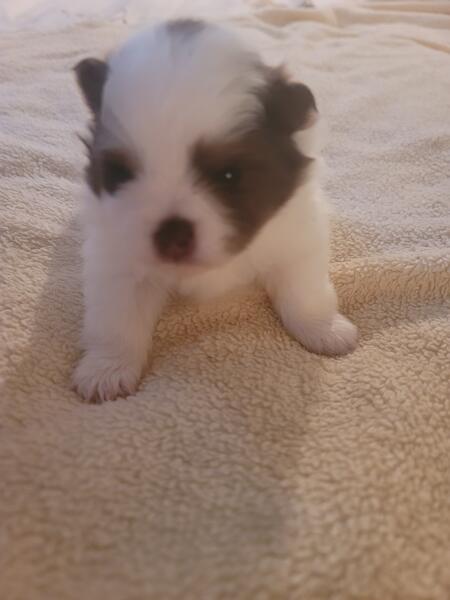 message dem1361 about this ad Chocolate & White Parti Male 3 weeks old AKC registered Vet checked shots & deworming upto date Micro chipped puppy care package Ready August 22,2025 Deposit $900 |