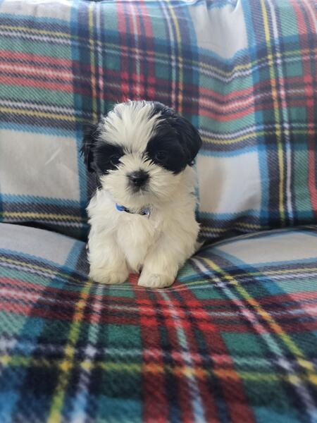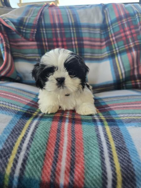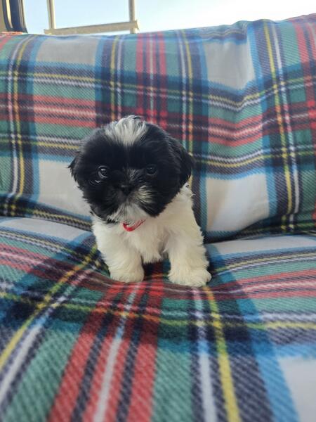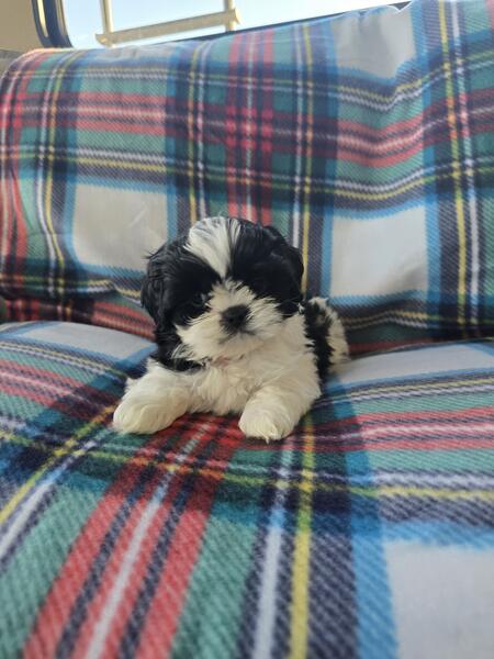 message piperdixie202513 about this ad 4 adorable European/ American shih Tzus available! They were born 9/15/24 and will be ready to head to there forever homes 11/9/24! If you are interested in the puppies please message me at 231-499-3401. The babies have started to play and their little personalities are showing through! All the babies available are females! The parents of the puppies, their mother (Willow) is a European shih tzu with a beautiful brown and tan coloring. Their (Toby) is an American shih tzu has a black and white just like all the puppies! |