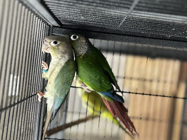 message lauraslittleparrots about this ad See photos of the birds available and pricing. All not tame. Pickup up in Fort Worth, Texas or Shipping additional $195 with delta airlines or $145 with USPS. Green cheek pairs: Pair 1: Bonded green cheeks: 2016 normal green dnad male and yellowside dilute w/ 2024 hatched female $300 Pair 2: Green cheek conures: Proven mooncheek female with cinnamint male 2018/19 $500 they produce mooncheeks and cinnamints Pair 3: BONDED PAIR READY TO BREED THIS SPRING: Green cheek conures: Cinnamon turquoise dnad male 2-3 years old with yellowside female 1 year old bonded pair $350 for the pair -SUN CONURE red factor hatched 2018 dnad male, not tame $400 obo LaurasLittleParrots.com |