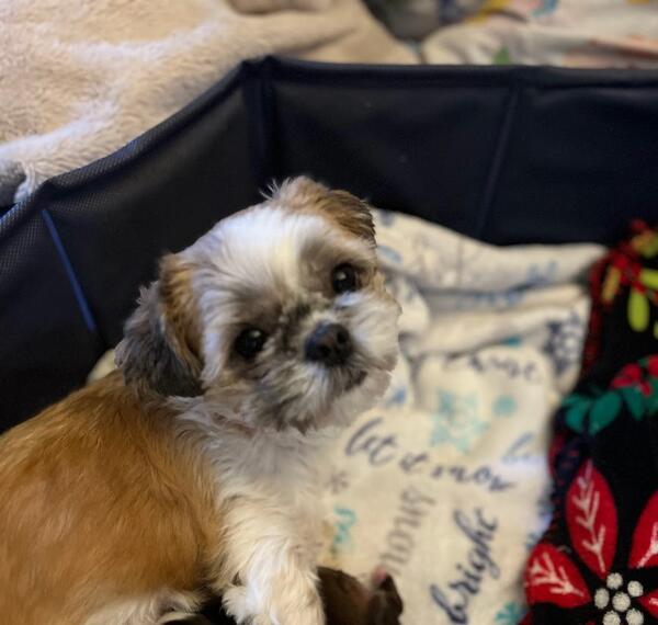 message allshihtzus about this ad Raised around children, sweet, snuggly, and playful! Three females and one male shih tzu puppies available today! $475 each, discount if you want two since they love to play together! Dad is the dark dog wearing a collar and bowtie and mom is pictured sitting on the Christmas blankets. |