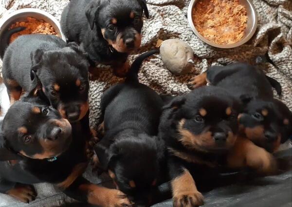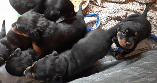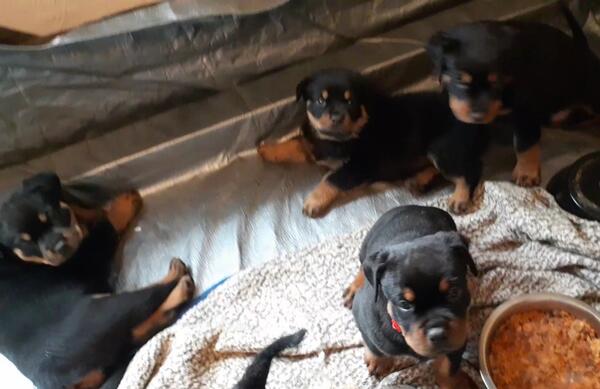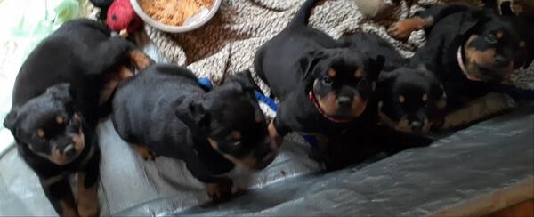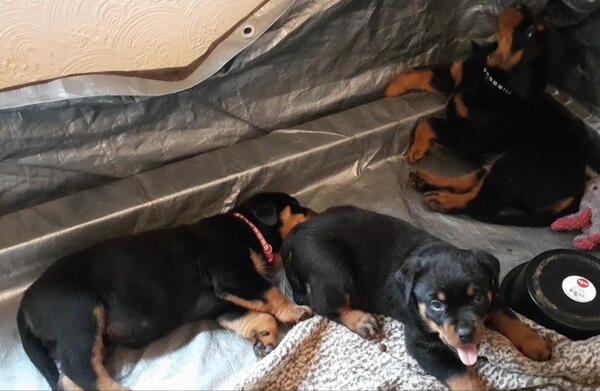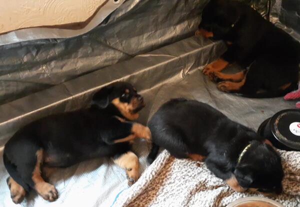 My Rottie Koda had 10 babies. They are the cutest babies in the world and need their forever homes. there are 2 females available still. They are about 13 weeks old and have all their shots.