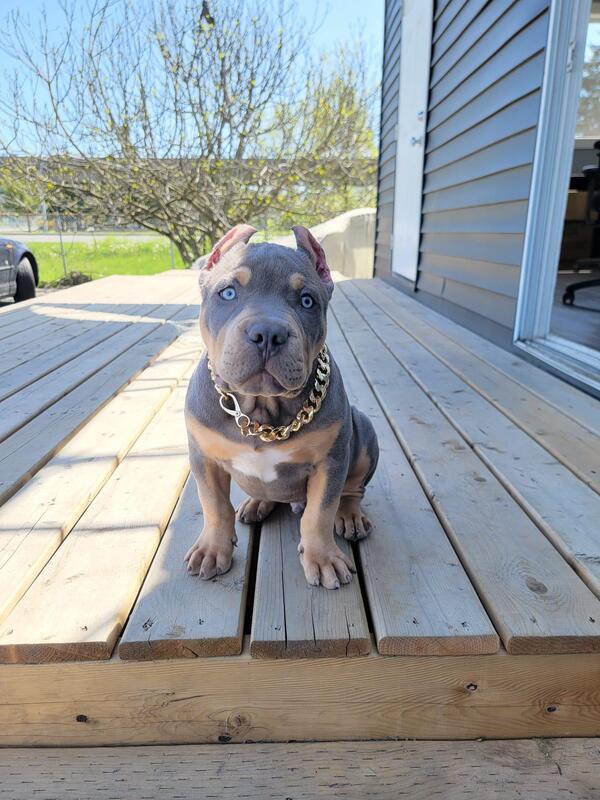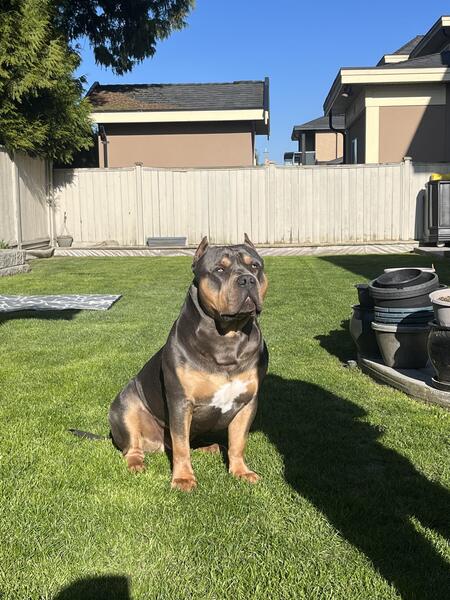 message gotti about this ad Hi there I am looking to breed my Xl American Bully. He will be 2 years old at the end of Feb. He is still growing he weighs 122 pounds last time I checked. He is ABKC registered. Hes comes from a well known kennel from the U.S (more info upon request) He can potentially produce the merle gene. His mom was merle. For his stud I am looking for first pick of the litter not for resale to keep. Please get back to me if youre interested with details of your female. You can call or text me at (778) 968-1551 text would be preferred. |