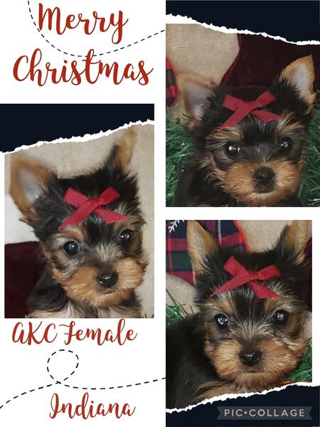 message beautycr75 about this ad Akc tiny female yorkie charting only around 2 to 3 lbs FULL GROWN Gorgeous fluffy coat and short body style. She loves attention and loves sitting on your lap. She will be UTD on shot and worming. For more information you can reach me at 765-720-5948. |