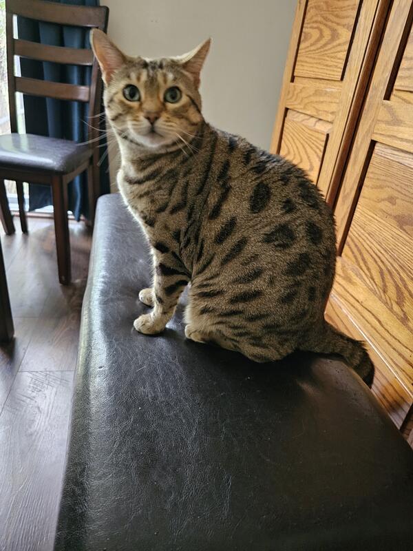 message bmlnd2695 about this ad Four year old female Bengal for rehoming. Super loveable and playful. She is spayed. Has been around cats and dogs but prefers a home without dogs. Typical bengal personality and loves climbing up high and chasing laser toy or play mice. Does have medical requirements (allergic to distemper combo vaccine Message for details. Rehoming fee negotiable. |