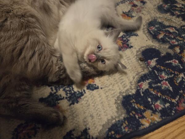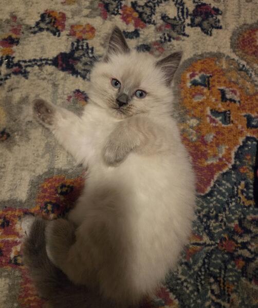 message borderpaws about this ad Female blue point Ragdoll baby. Very loving, sweet, and affectionate. Super soft and fluffy coat. She has been wormed. First shot ( Spectra Focus Vax 3 Plus FeLV) given November 13. Both parents are indoor family pets. Born September 18. She is now 9 weeks old. |