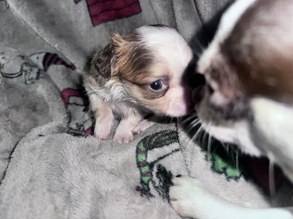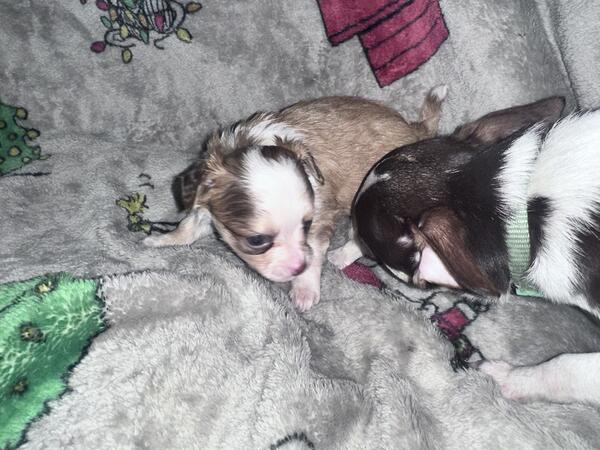 message mayamari4 about this ad This is Teddy. He was born on Feb. 28, 2025. He is a gorgeous long coat. He comes from a long line of super sweet dogs. His parents can be seen in the last two pictures. Father, Alfie, is a lilac tri long coat and mother, Isabella, is chocolate and white piebald. Teddy is charting at 4-4.5 pounds, full-grown. He will have 3 vaccines before leaving at 12 weeks. If you have any questions, please text at 304-641-4111. |