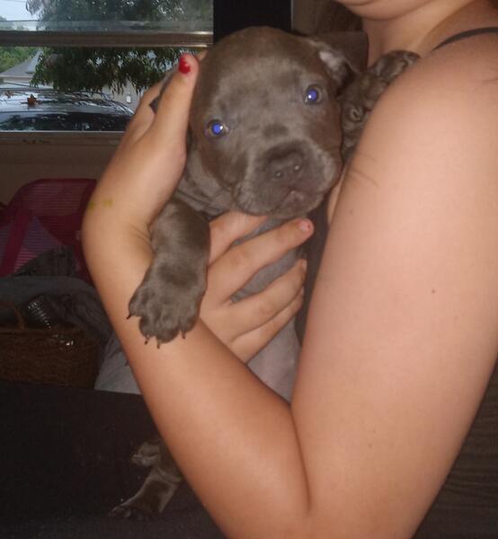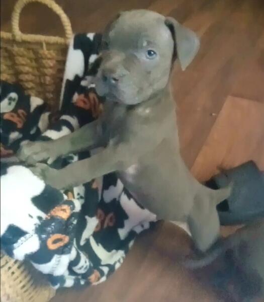 message victor83 about this ad Purebred 8 wk old American Bullys with strong blue bloodlines on both sides, UTD shots/dewormings. These puppies are in home raised around kids and pets. Parents are very sweet and loving. Will make excellent guard dogs and companions. Super smart and already aim to please. Will come with starter pack , flea preventitive, nails trimmed and used to baths. Also puppy pad trained as well as kennel trained. Located in Shawnee Ok TEXT or call 810-493-3892 , can also email (bersine13@yahoo.com) |