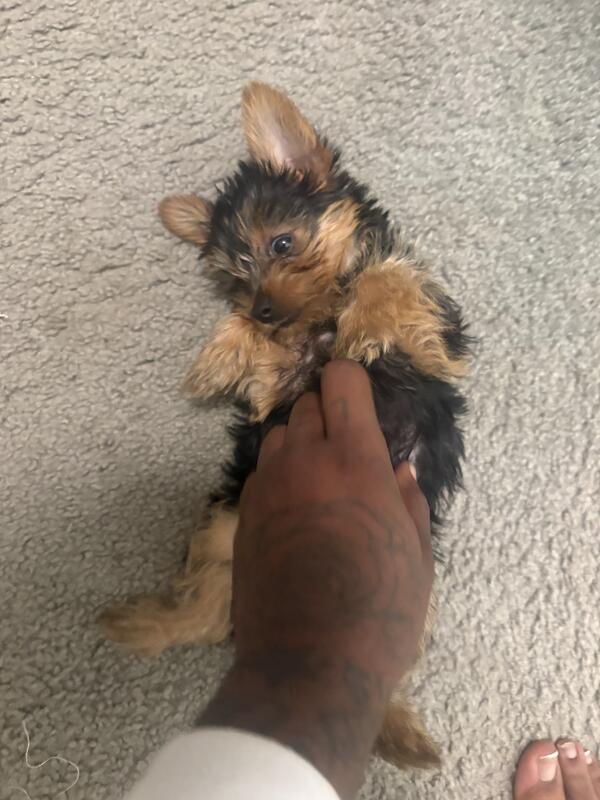 message jasminehawkins about this ad Hey I have a 11week old female Yorkie looking to rehome she not fix she a good puppy me and my wife dont have time for her as we thought we did Im asking a rehoming fee of $800 if interested please contact me 4437590994 please no scams. Price negotiable |