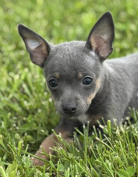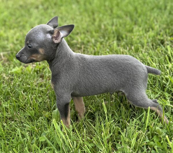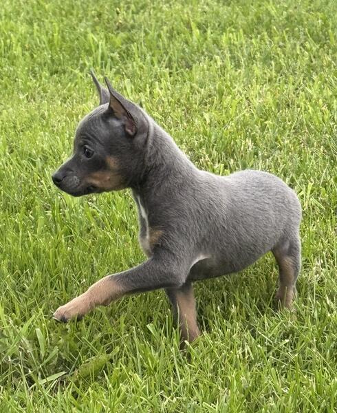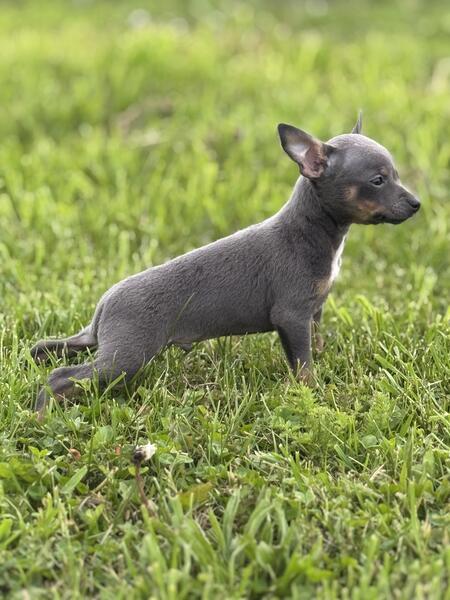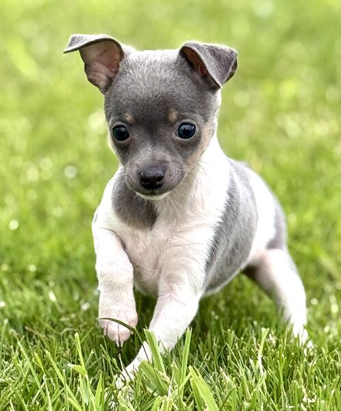 message roaringwind1 about this ad Sire is toy size - 7 lbs Dam is a mini at 12 lbs and has champion bloodlines . Puppies expected to mature 12 lbs or under Wormed and vaccinated . Parents are purebred and registered but we are not rehoming any puppies for breeding or showing purposes so the litter is not registered.Deposit will hold until pick up Breeder of Rat terriers for over 20 years with many satisfied families. Breeder of a UKC champion Rat Terrier Male.Parents are pictured. Can send brief video if desired . Located on the Pa/ ny border. Pups are ready to go now |