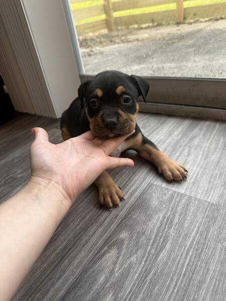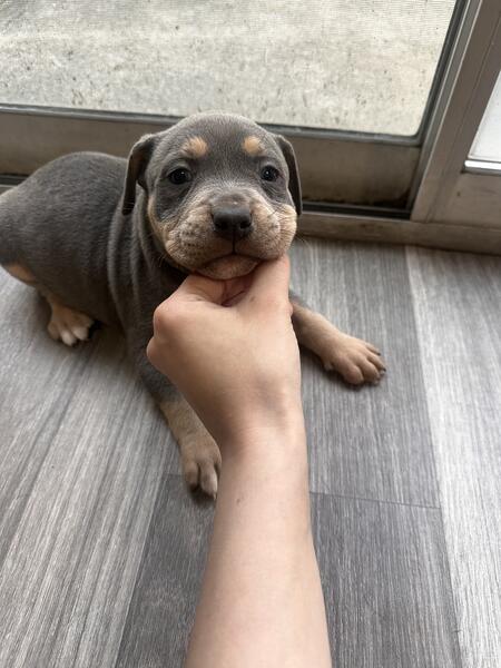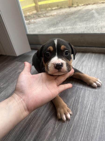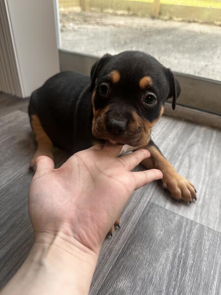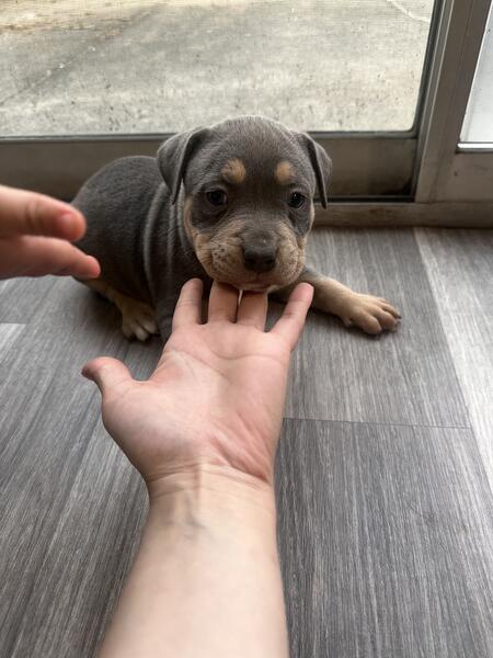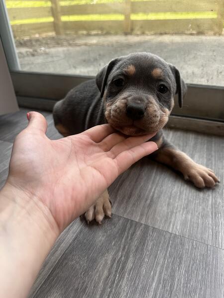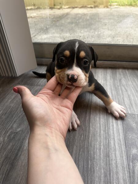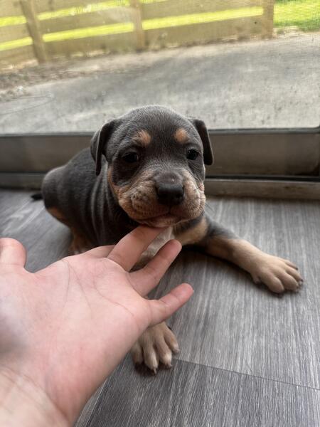 message riahdagoatt about this ad ABKC registered American pocket bullies Born 3-17-25 Ready to go home 5-12-25 Males available Contact me at 380-223-8114 Located in Columbus Ohio Will come with first vaccines + deworming |