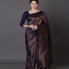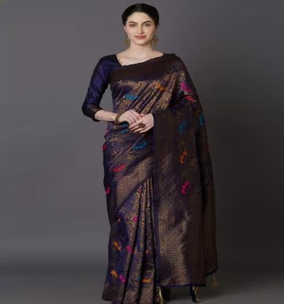 message prerana about this ad Saree length: 5.5 m Blouse length: 1m Jacquard The last image gives a detailed look of the blouse piece that comes with this saree (The blouse in the images is only for styling purpose) Dry clean httpsajiio.in/JxtE0zC |