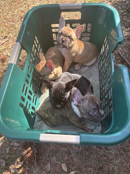message emilla15 about this ad French Bulldog puppies born 2/12/25. Have their first set of shots and health certificate. I have a fawn female, a brindle male with a white collar and a black female |