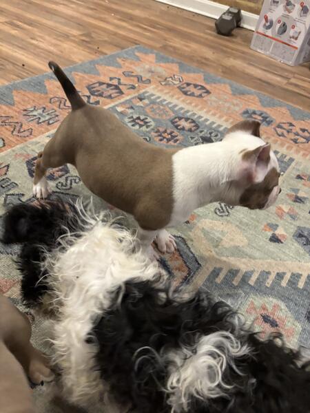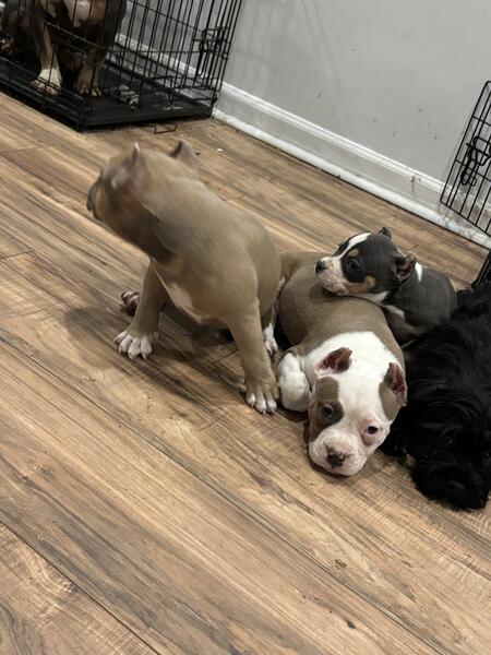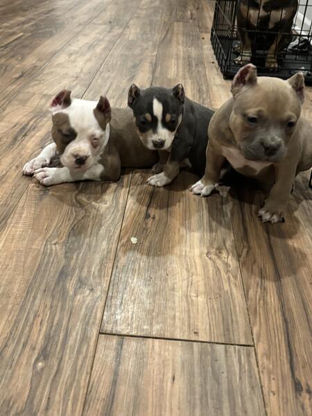 message ntnwdr1985 about this ad 2 Female Puppies. ABKC papers in hand. UTD on Vaccines.Dad is Ch Kangol. Son of the Infamous RIP Golden Child. 11 weeks old. Pups are going to thick. Price may be Slightly Negotiable. |