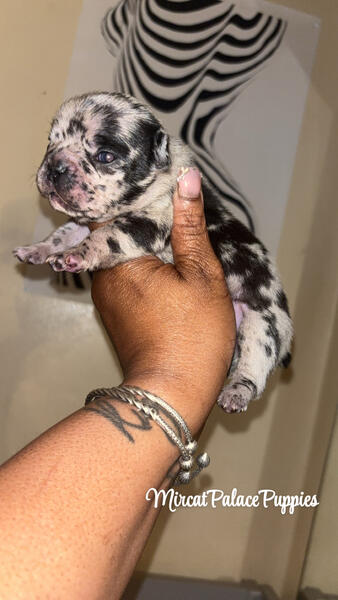message mircat83palace about this ad Merle blue and tan Frenchie female Dob 4/30/25 Available for reservation ready 6/27/25 for pick up or delivery AKC DEPOSITS 500$ six week pmt arrangement available total $3000 pet home option 2000 will come without papers Contact 479.800.2332 or 479.573.4679 Miriam |