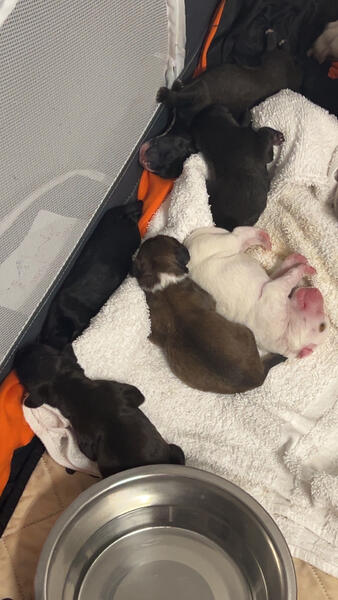 message stoney08 about this ad 5- black 2- brown 2- white They are a pitbull and mini poodle mix both dogs are very gentle and playful the puppies are very small like the poodle They come with there first shots , and a To go bag for there new home |