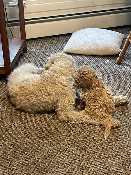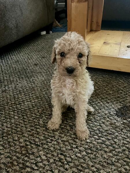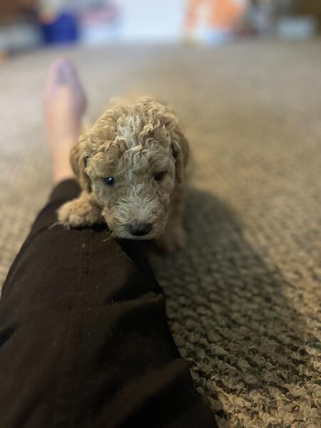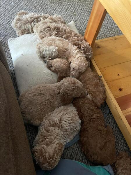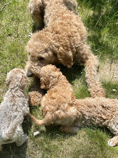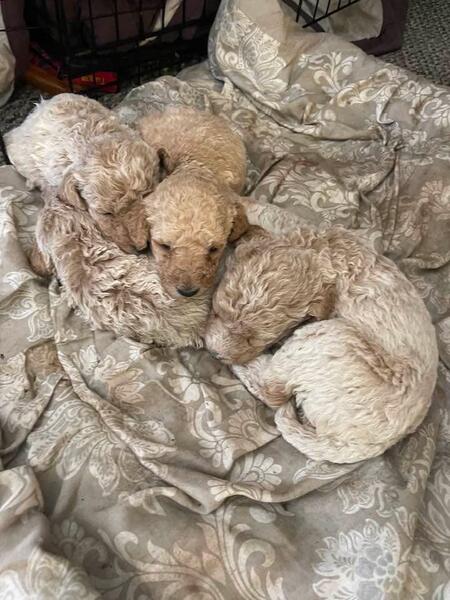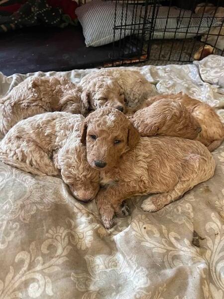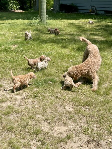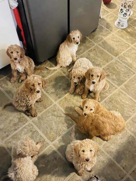 message k2euwema about this ad 9 week old golden doodle puppies. Vaccinated, not completely potty trained, however close. No papers. Both mom and dad are golden doodles. I have 8 female, 1 male. Call/text Kelli at (231) 383-5206 |