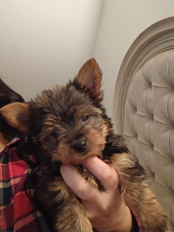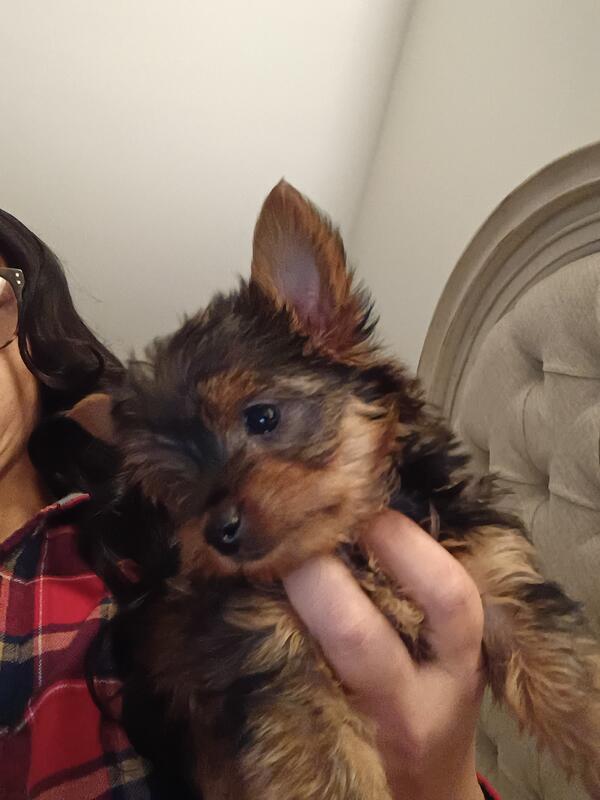 message yorkiemom84 about this ad I have 1 female Chocolate Yorkie puppy born on October 7th Puppies are 9 weeks UTD on vaccinations, dewormed, & Tails have already been docked This sweet loving baby is looking for her FurEver home.Puppy will come with gift bag and blanket with mom scent. Text for more information 910-703-6955 Amber |