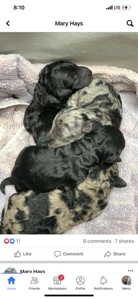 message rockerfeller about this ad I have four toy poodle puppies, one female and three males two black males asking $800 each. Also have one black female asking 1200. And then I have one male Blue Merle puppy asking 1200 for him. You can call or text 269-339-7024 for more information. They will be six weeks December 27 and eight weeks at January 10. They will have their dew claws done and their tails docked. They will be up on their shots and dewormed. The first picture is a picture of the mother. She is a Blue Merle. The second picture is her first letter. The last picture is one of the last litter puppies. I will be putting on pictures of the puppies once they are a little older. |