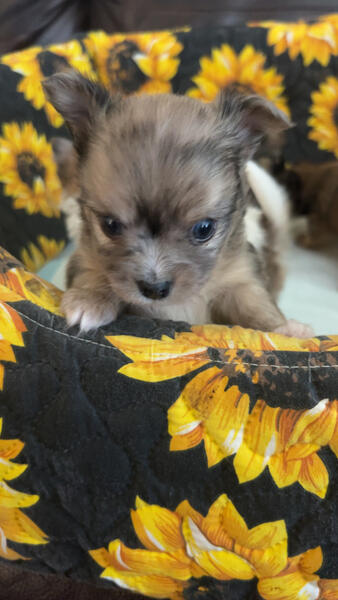 message dbnhchis about this ad AKC long coat chihuahuas, located in southern Indiana. I have 3 males and 1 female available, all charting 5-6lbs. They come puppy pad trained, age appropriate shots and a puppy pack with all the needed goodies. |