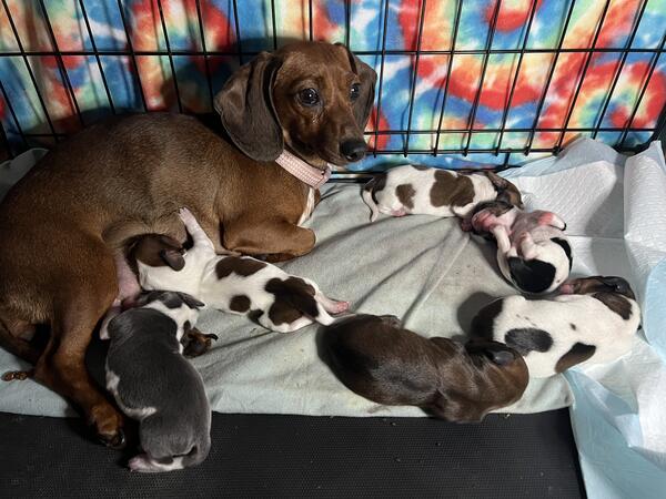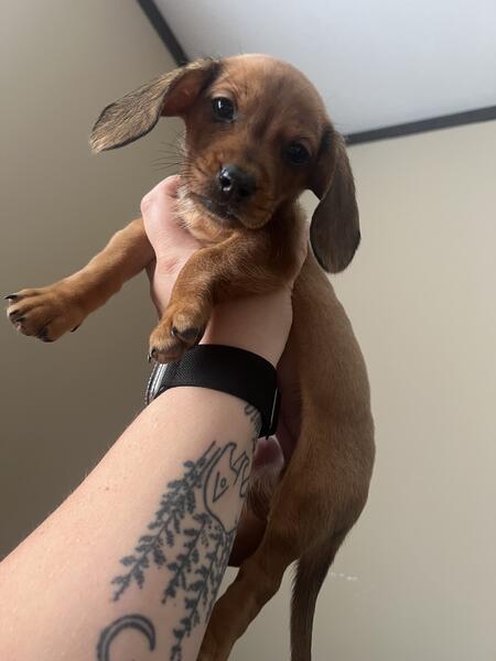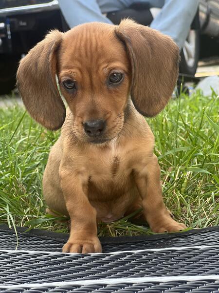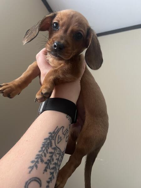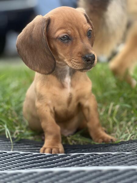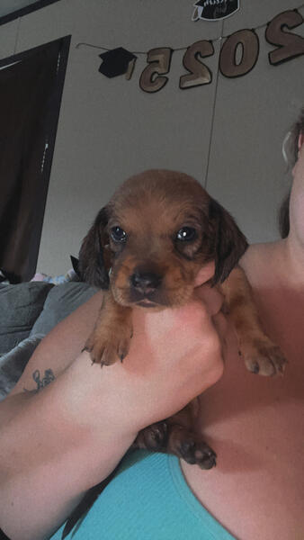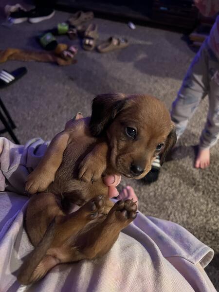 message shelby3299 about this ad I have an all red male The other 4 are spoken for. This is moms second litter. Mom is a red mini and dad is a piebald mini. Dads line throws silver both heats had silvers. He will come home with a puppy pack, 4 rounds of shots, and dewormed. They were born may 27th. They are eating solid food and socializing with a lizard, bunny, bird, dogs, cats, and varying ages of kids. He is ready for his furever home. Mom & dads photos are also included above. Mom is about 7lbs and dad is about 9.5lbs. Message me for more information and I can send my number for more details/photos/videos. |